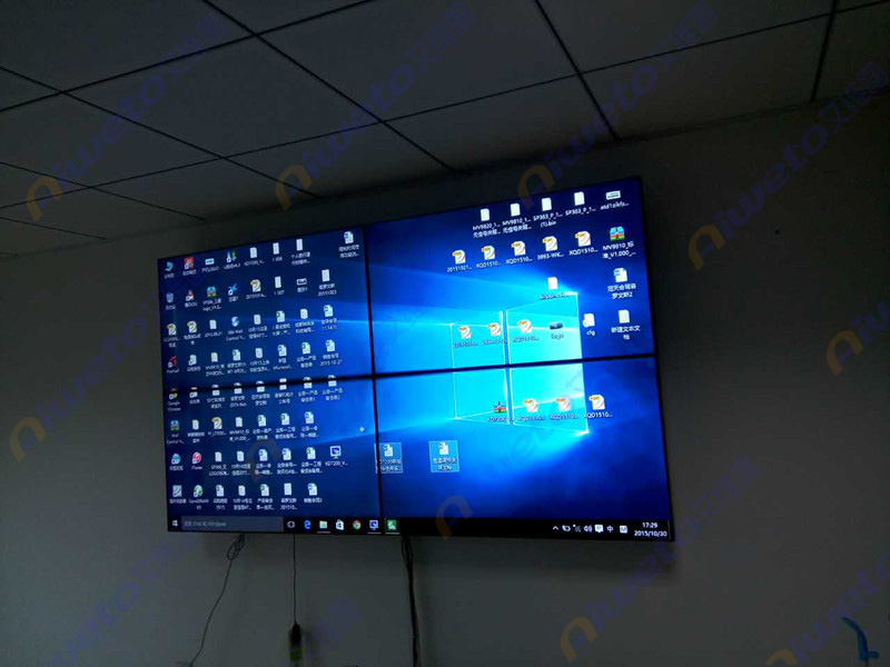 通過(guò)對(duì)客戶使用需求和部署環(huán)境的認(rèn)真研究和考察,Aiweto(艾維圖)科技工程師給出了多套相關(guān)解決方案,最終選用了由4臺(tái)(Aiweto) 47寸液晶拼接單元組成的2×2大屏幕液晶拼接墻。(Aiweto) 47寸液晶拼接單元采用工業(yè)級(jí)面板,采用先進(jìn)的集成處理芯片,性能穩(wěn)定,運(yùn)動(dòng)圖像補(bǔ)償?shù)泉?dú)有的先進(jìn)技術(shù),有效的保證了輸出圖像的效果,支持7×24小時(shí)開機(jī),拼接邊縫小,適合大屏液晶拼接項(xiàng)目應(yīng)用。